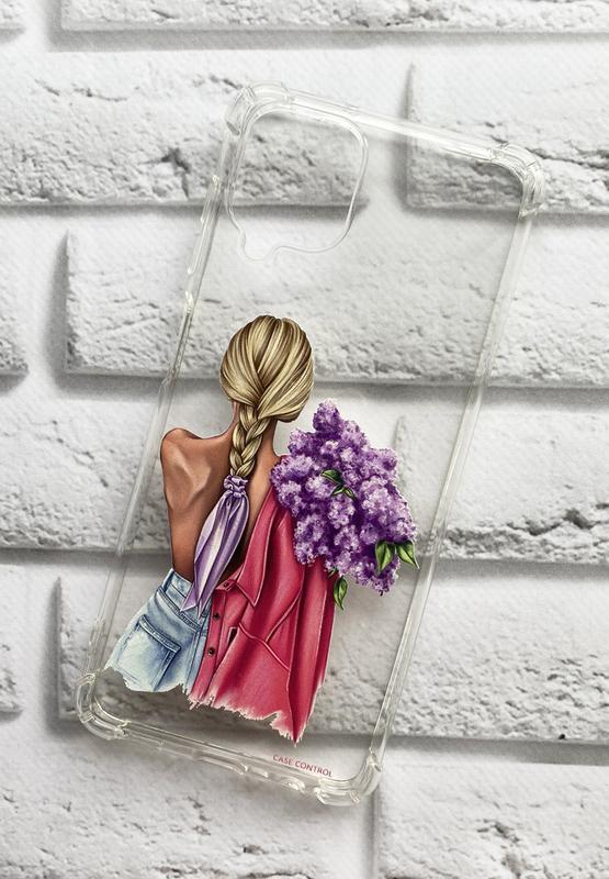 Чохол з потовщеними кутами на samsung a12 рельєфний дизайн дівчина з бузком принт 7