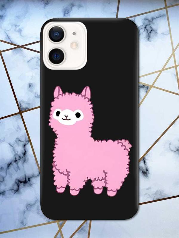 Матовый черный чехол на iphone 12/12 pro :: лама розовая (принт 100)