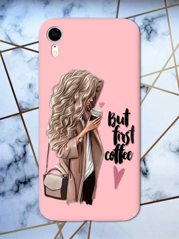 Матовый розовый чехол на iphone xr :: девушка с кофе (принт 114)