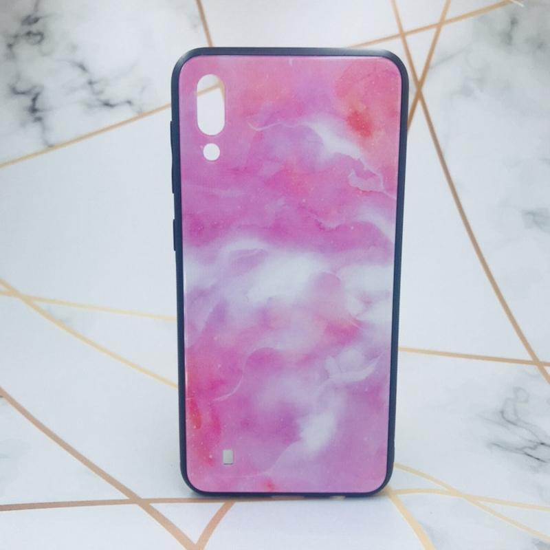 Силиконовый чехол glass case со стеклянной задней панелью для samsung galaxy m10 мрамор ро...