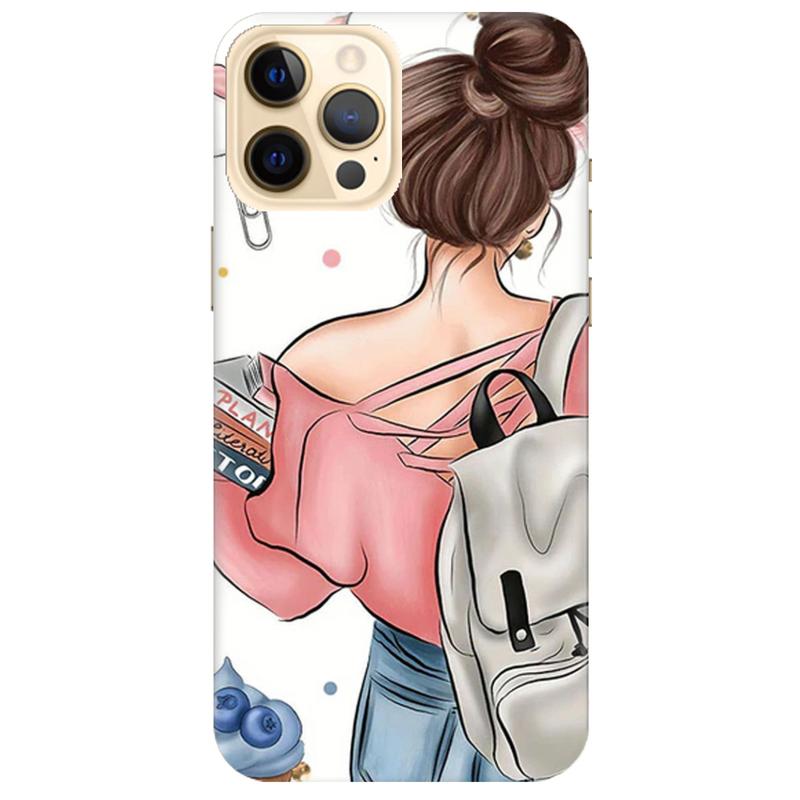 Чохол на iphone 12 pro max рельєфний дизайн дівчина з рюкзаком принт 30
