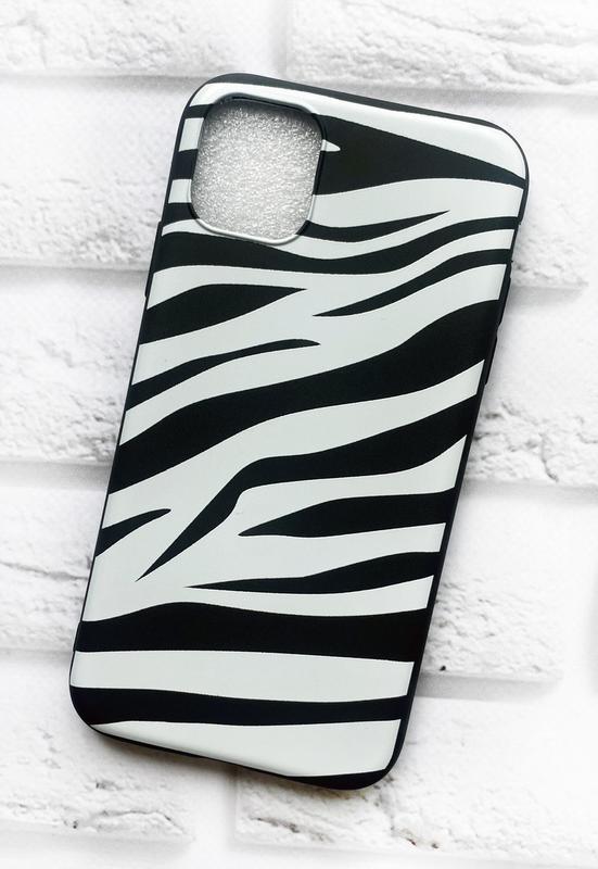 Матовий чохол на apple iphone 11 (6.1) рельєфний дизайн зебра принт 91 чорний