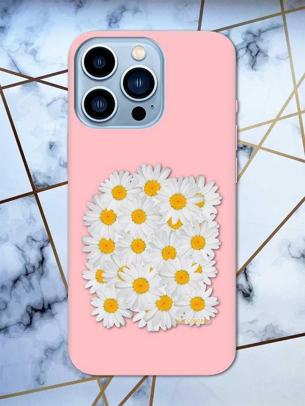 Матовий рожевий чохол на apple iphone 13 pro max рельєфний дизайн букет ромашок принт 40