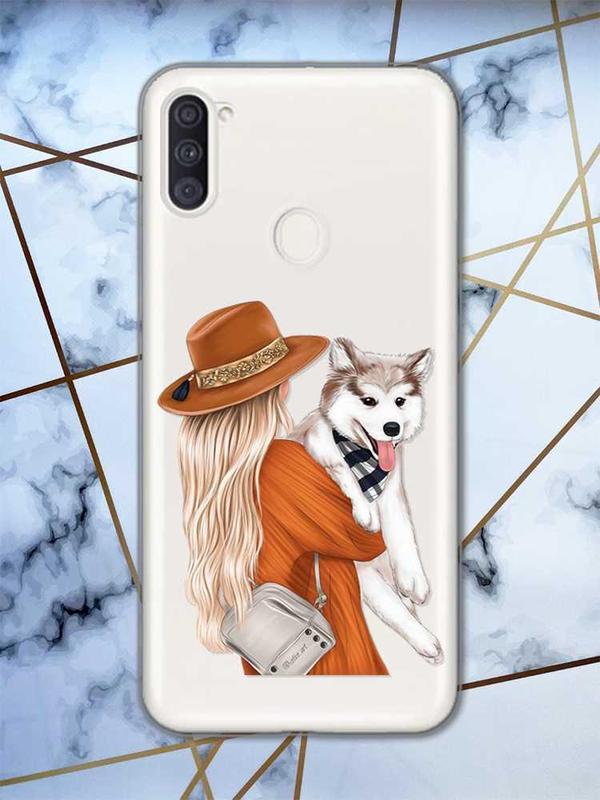 Прозорий чохол на samsung galaxy a11 дизайн дівчина з песиком принт 115