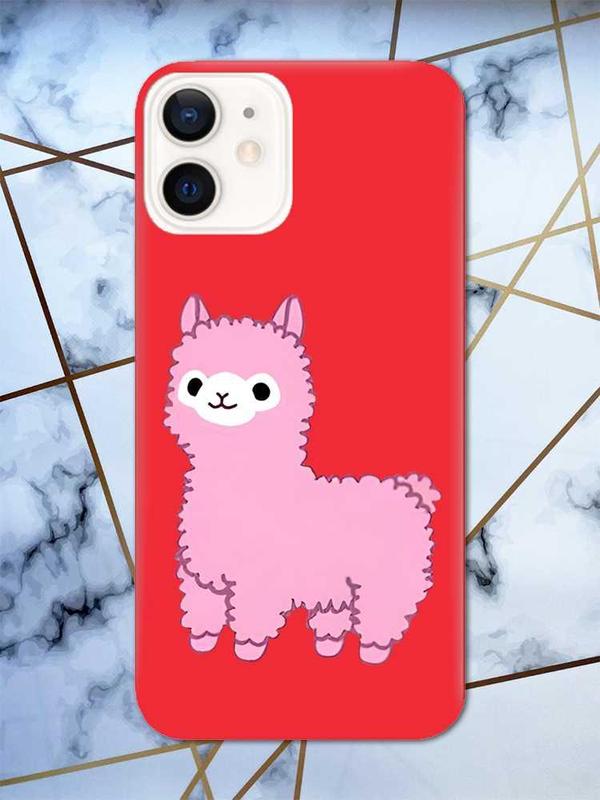 Матовый красный чехол на iphone 12/12 pro :: лама розовая (принт 100)