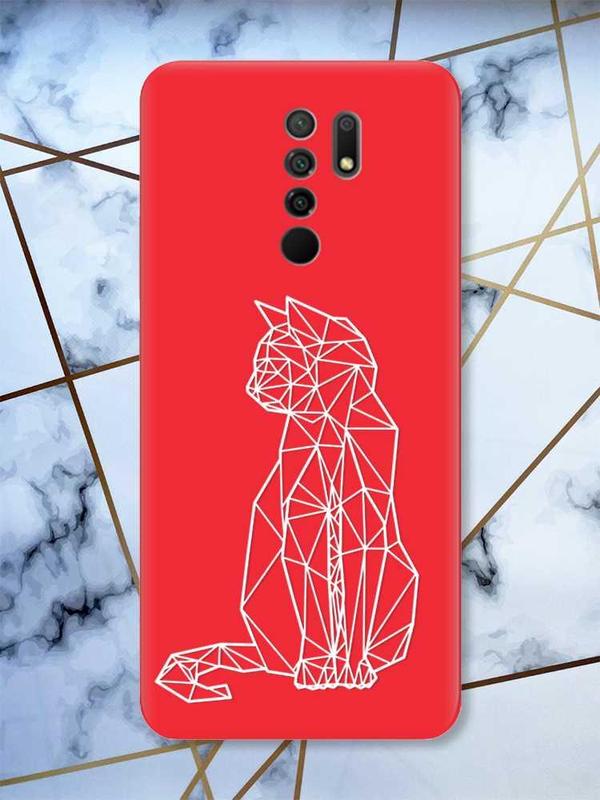 Матовий червоний чохол на xiaomi redmi 9 котик принт 125