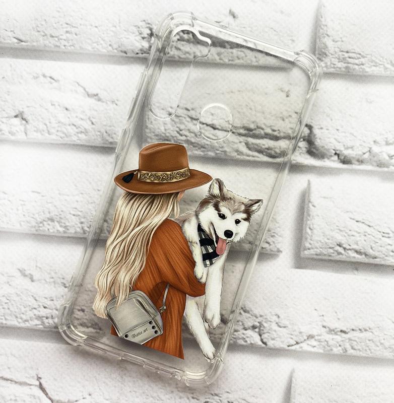 Прозорий чохол з потовщеними кутами на xiaomi redmi note 8 дівчина з песиком принт 115