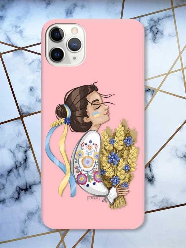 Матовий рожевий чохол на iphone 11 pro (5.8) патріотичний дизайн українка з колосками прин...