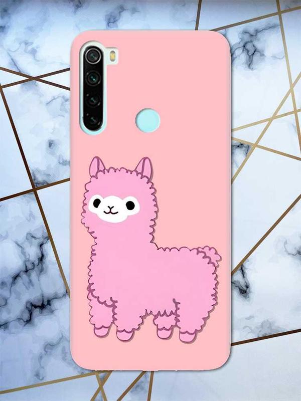 Матовий рожевий чохол на xiaomi redmi note 8 дизайн лама рожева принт 100