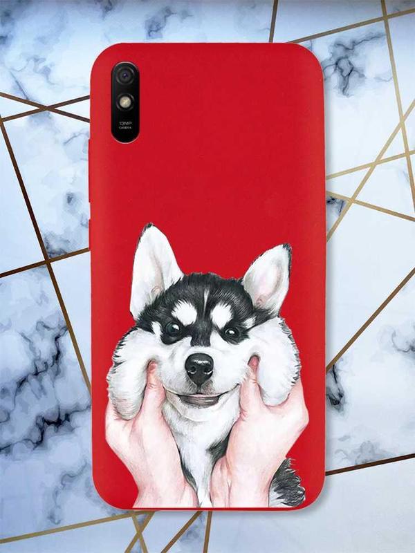 Матовий червоний чохол на xiaomi redmi 9а мордочка принт 121