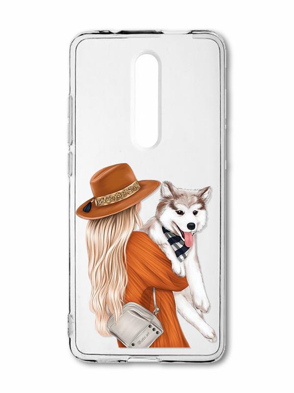 Прозрачный чехол на xiaomi mi 9t / k20 девушка с собачкой (принт 115)