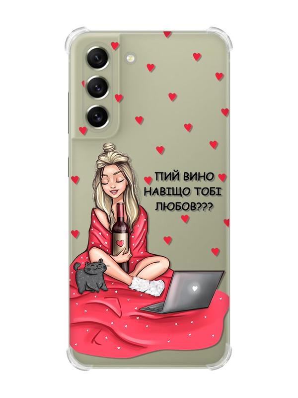 Чехол с утолщёнными углами для samsung s21 fe девушка с вином (принт 220)