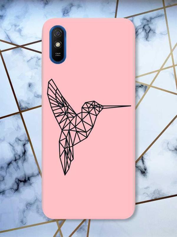 Матовий рожевий чохол на xiaomi redmi 9а колібрі принт 122