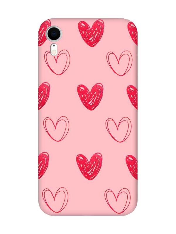 Матовий рожевий чохол на apple iphone xr сердечка червоні (принт 77)