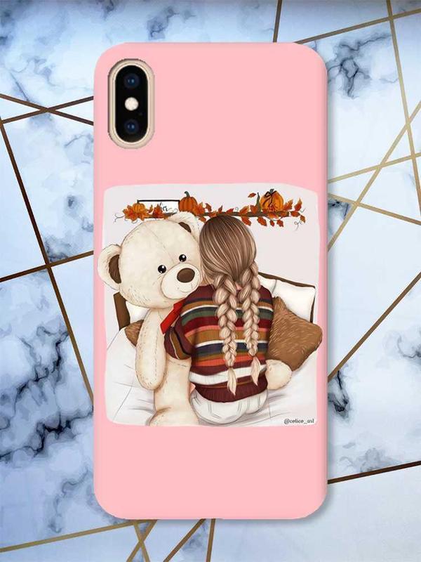 Матовий рожевий чохол на iphone xs max дизайн дівчинка з ведмедиком принт 117