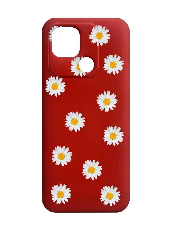 Матовый красный чехол на xiaomi redmi 10c фон ромашки (принт 41)