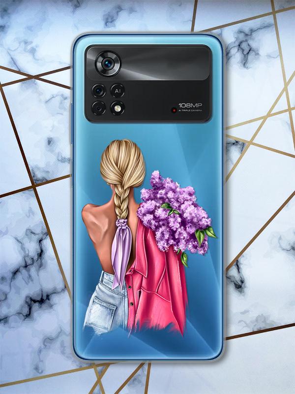 Прозрачный чехол на xiaomi poco x4 pro девушка с сиренью (принт 7)