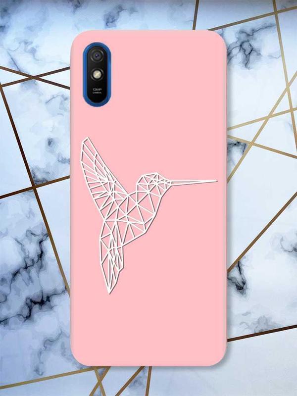 Матовий рожевий чохол на xiaomi redmi 9а колібрі принт 123