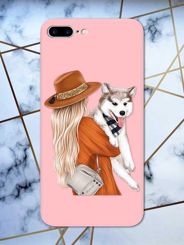 Матовий рожевий чохол на iphone 7 plus/8 plus :: дівчина з песиком (принт 115)
