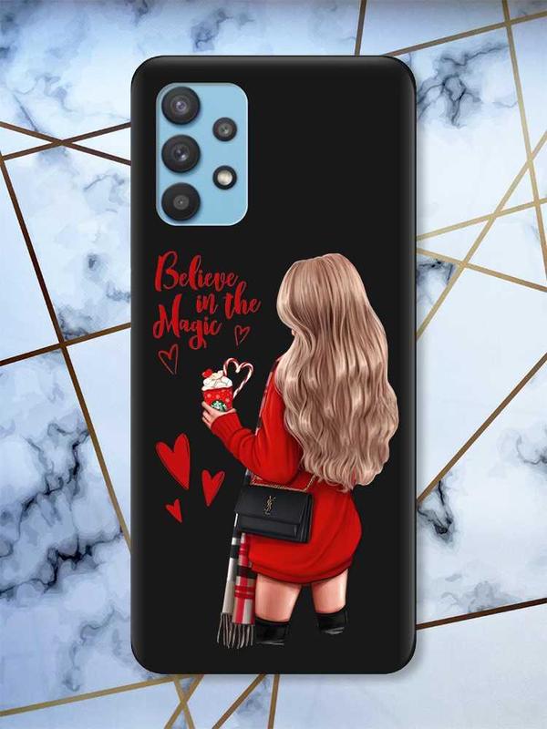 Матовий чорний чохол на samsung galaxy a32 дівчина з кавою принт 137