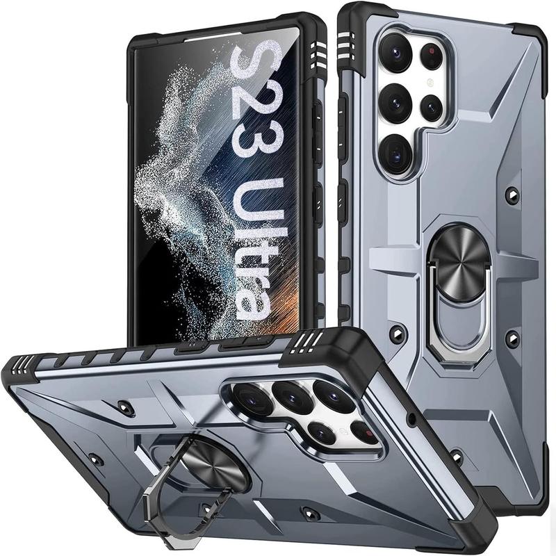 Чохол ELEPIK для Galaxy S23 Ultra з Кільцем та Підставкою (Сірий) Бренд: ELEPIK Сумісні моделі телефонів: Samsung Galaxy S23 Ultra Колір: Сірий Сумісні пристрої: Samsung Galaxy S23 Ultra Матеріал: Полікарбонат, Термопластичний поліуретан Сертифікований захист від падінь з висоти 6 футів: Спеціально для Samsung Galaxy S23 Ultra (6,8 дюймів), цей чохол забезпечує захист від падінь з висоти 6 футів завдяки 4 кутах з антиударною структурою та 360-градусним подушкам, що розподіляють 99% сили удару. Перевірено на витривалість до понад 4500 падінь без пошкоджень за стандартом [MIL-STD-810G]. Ефективно захищає від падінь, ударів, вм'ятин і подряпин. Подвійний захист: Чохол поєднує м'який TPU внутрішній шар і міцний PC зовнішній шар для подвійного захисту вашого пристрою. Використання цього чохла не вплине на підключення 5G. Насолоджуйтеся надійним захопленням і спокійною впевненістю, знаючи, що ваш телефон захищений від щоденного зносу. Вбудована підставка з кільцем: Підставка обертається на 360 градусів горизонтально та на 180 градусів вертикально. Ідеально підходить для перегляду відео, відео дзвінків або веб-серфінгу без рук. Кільце забезпечує надійне утримання телефону та зменшує ризик крадіжки під час використання або фотографування. Підтримка магнітного автомобільного тримача: Чохол має вбудовану металеву пластину для легкого кріплення до магнітного тримача в автомобілі (не входить в комплект). Це зручна функція для безпечного використання під час водіння. Чохол військового стилю ідеально підходить для активного відпочинку, такого як біг, альпінізм або кемпінг. Також є чудовим подарунком для чоловіків, жінок, хлопців і дівчат.
