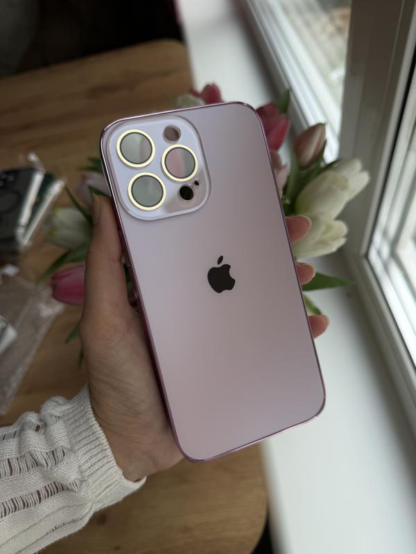 Чохол акриловий з лого, є захист камери склом. Всередині силікон; рожевий на 14 про Макс