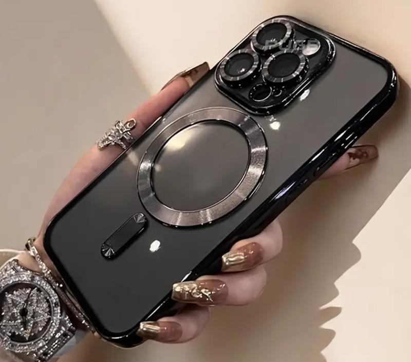 Прозрачный магнитный чехол для iphone 13 с защитой камеры и поддержкой magsafe чёрный пурп...