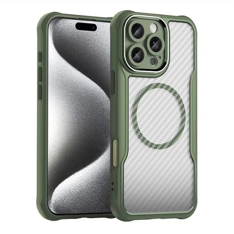 Чохол бампер для iphone 13 pro max протиударний magsafe airbag carbon fiber хакі