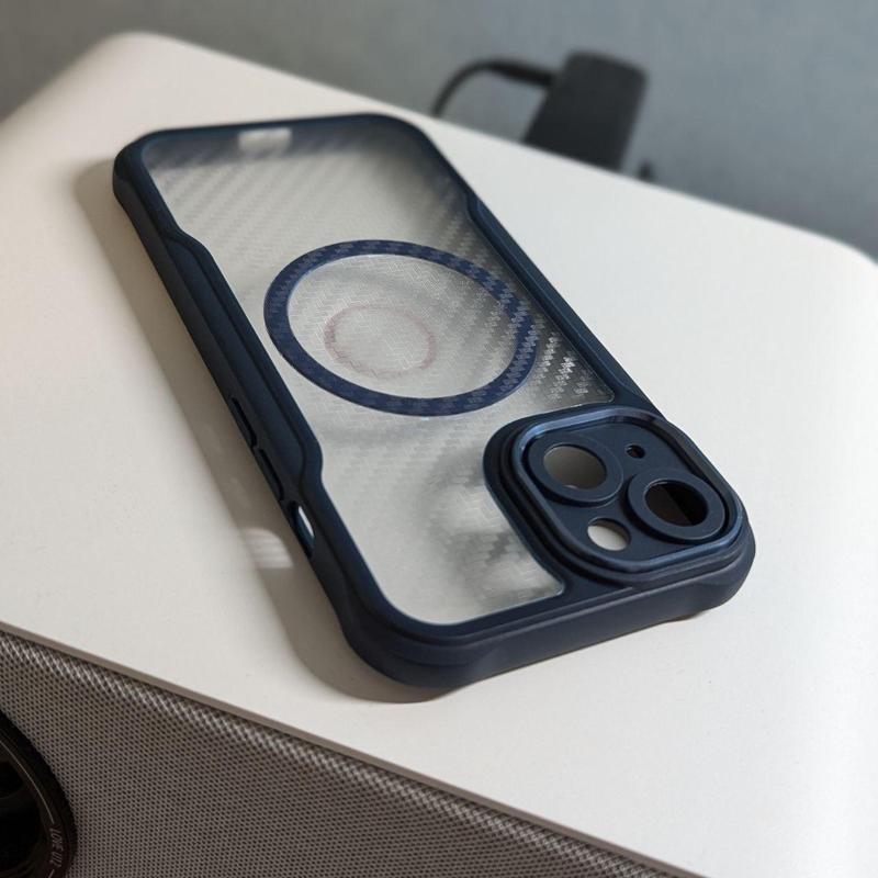 Чехол бампер для iphone 13 | 14 противоударный magsafe airbag carbon fiber синий