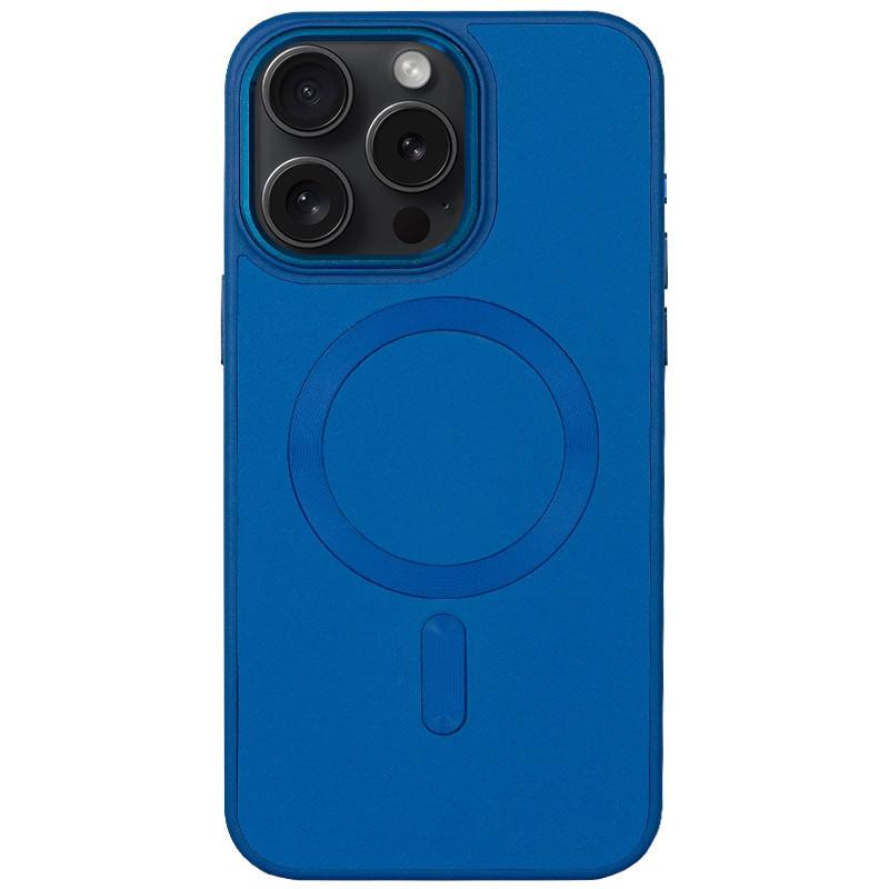 Кожаный чехол bonbon leather metal style with magsafe для apple iphone 14 pro (6.1") синий...