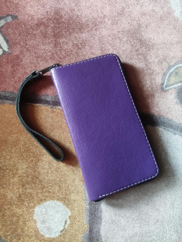 Чохол для смартфона, красивого фіолетового відтінку. Зверху шкірзамінник, всередині - матеріал типу замші, м'який та безпечний для екрану смартфона. Розміри: 15×8×1,2 див.