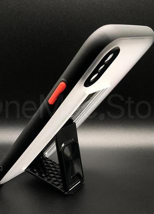 Протиударний чохол 3в1 для Iphone XS Max Особливості даного чохла полягають в тому, що він має: метал Має пластину для кріплення на магніт в авто Має тримач для руки (щоб не випав телефон) Має вбудовану підставку в двох положеннях, вертикально і горизонтально Має захист для камери Матеріал: Скло, покрите прогумованим пластиком Тактильно дуже приємний і добре сидить в руці