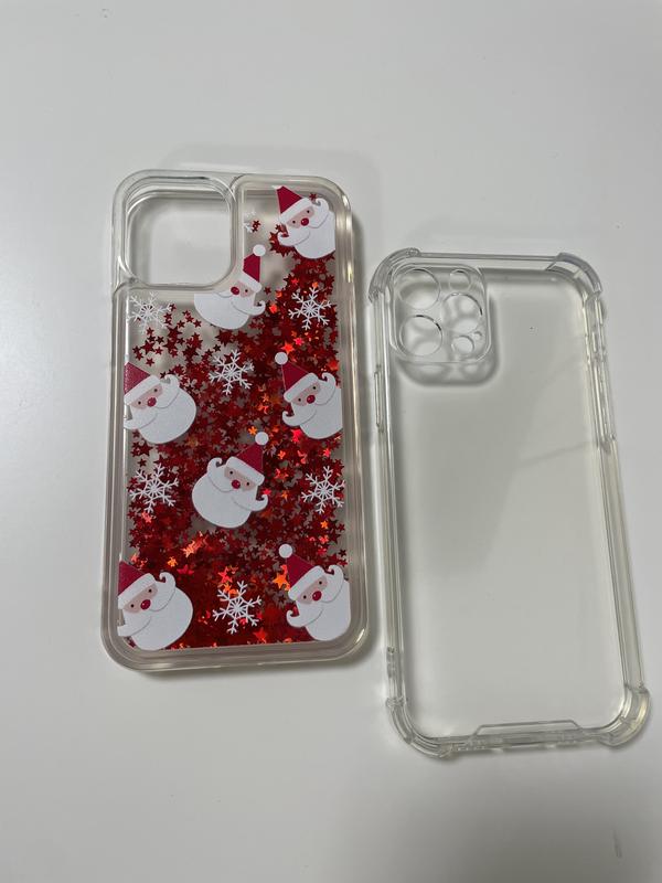 2 чохла на айфон 📲 12 про , стан ідеал , силіконові, новорічний з плаваючими блискітками, прозорий з ущільненої захистом краю Не жовті , спец фото на білому фоні.