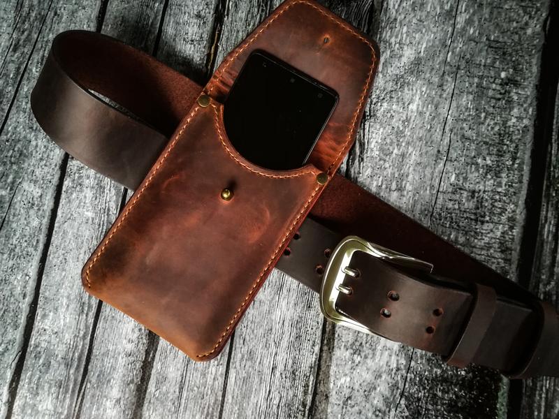 Чохол для мобільного з натуральної шкіри. Закрито ого типу. Розмір - довільний. Має кріплення на пояс.