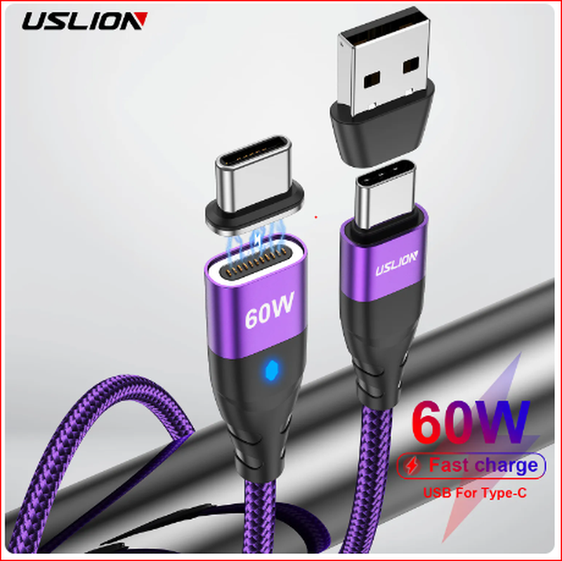 Uslion 2 в 1 pd 60 вт магнітний кабель, швидке заряджання, передавання даних.