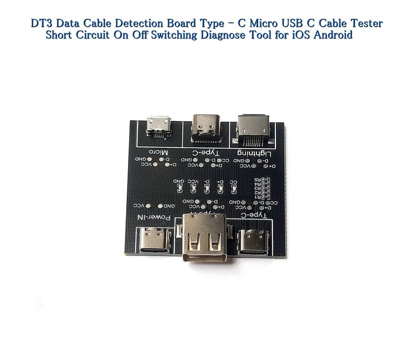 USB- тестер кабелю DT3 DT3 Data Cable Detection Board Type - C Micro USB C Cable Tester Short Circuit On Off Switching Diagnose Tool for iOS Android Опис • Плата дозволяє перевірити працездатність і цілісність кабелів зарядки і синхронізації з різними типами роз'ємів : MicroUSB, Type - C, Lightning • Для перевірки кабелю необхоимо подати живлення через роз'єм Type - C "Power-In" і підключити кабель, що перевіряється, до роз'ємів, що відповідають йому • Кабель справний - спалахнуть усі світлові індикатори • Обрив/коротке замикання, відповідні індикатори горіти не будуть Характеристики: • Тип: вимірювальний пристрій • Назва бренду : TZT • Модель: DT3 Data Cable Detection Board • Джерело живлення : Type - C 5В(POWER - IN) • Інтерфейси: USB - A/MicroUSB/2хType - C/Lighning(роз'їм для Apple) • Колір плати : чорний • Размеры:50х50 мм • Вес: 13,5 гр.