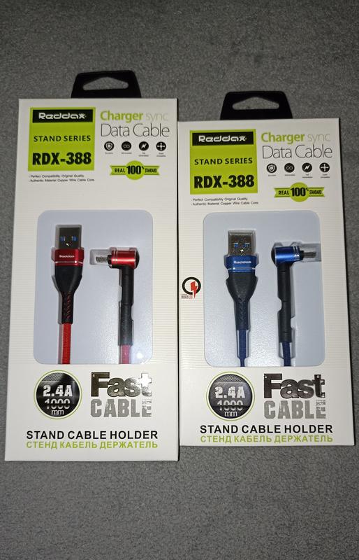Кабель reddax rdx-388 usb am/Micro BM (2.4а, синій або червоний, 1м) Стан новий, справний. В наявності по 2шт. кожного кольору. Характеристики: Довжина - 1м Сила струму - до 2.4А Роз'єм - microUSB