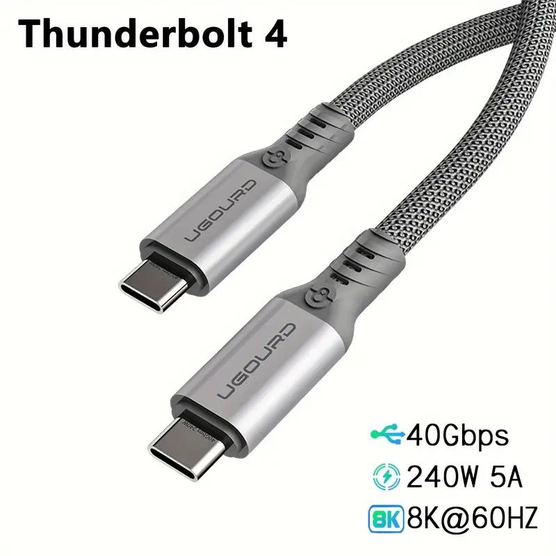 Кабель UGOURD Thunderbolt 4,40 Гбіт/с, PD 240 Вт Швидка зарядка, 6-контактний роз'єм pcie, сумісний з Thunderbolt 3, USB 3.2/3.1/3.0/2.0, DP 1.4, 8K60 Гц передача відео, для MacBook, ноутбука, eGPU, PS5, Xbox, док-станцій, SSD Box