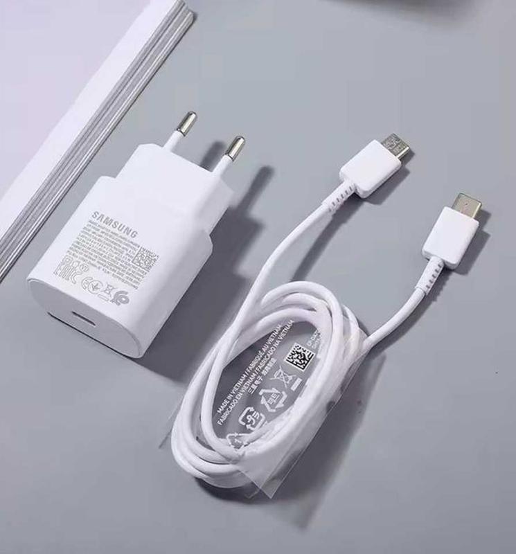 Оригінальний зарядний пристрій (швидкісна зарядка) від самсунг на 45W + кабель живлення в комплекті, все нове, не використовувались, є декілька. Є білі, є чорні, якістю будете задоволені, супер швидка зарядка.