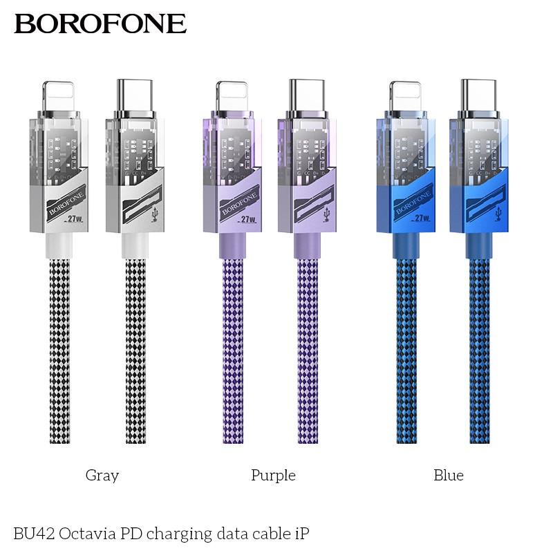 Кабель usb borofone bu42 octavia pd27w type-c to lightning 1.2m колір синiй