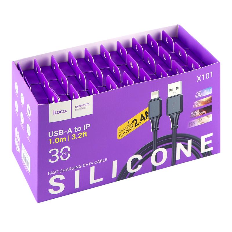 Кабель usb hoco x101 assistant silicone lightning 2.4a 30шт. колір чорний