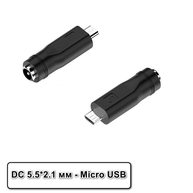 Перехідник - адаптер з роз'єму 5.5 х 2.1 мм на роз'єм Micro USB для блоків живлення або зарядних пристроїв. Характеристика: - Вхід: мама (female) 5.5 х 2.1 мм - Вихід: тато (male) Micro USB