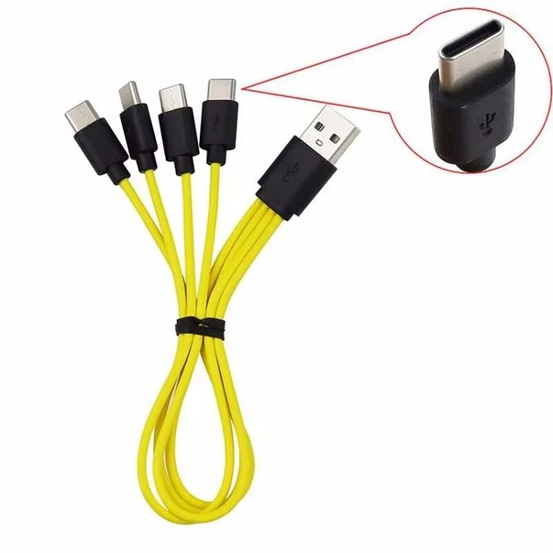 Кабель USB Type-С на 4 выхода подходит для одновременной зарядки нескольких устройств, что делает его удобным для использования в повседневной жизни. Он совместим со многими устройствами и может быть использован в различных ситуациях. Компактный размер и длина всего 25 см делают кабель портативным и применимым дома, в офисе и в пути. Универсальный кабель для зарядки устройств с разъемом Type-C, подходит для зарядки большинства моделей смартфонов, планшетов и других гаджетов. Одним из главных преимуществ данного кабеля является его повышенная надежность. Он выполнен из гибкого материала, что предотвращает его переломы и увеличивает срок службы. ВНИМАНИЕ! Кабель рассчитан только на зарядку, не подходит для передачи данных. Характеристики: - Разъем выход: Type-C х 4 - Разъем вход: USB-A - Передача данных: Нет - Материал: пластик, металл - Длина: 25 см - Ток: 5 V 2.4 А - Упаковка: zip-пакет - Производитель: Китай