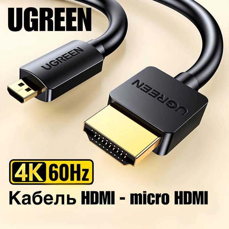 Кабель ugreen micro hdmi-hdmi 4k 60 гц підтримка 3d, hdr, arc 1 м. для підключення камер т...