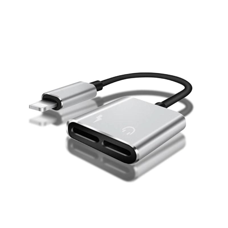 Перехідник для iphone, dual lightning audio charge adapter, сірий
