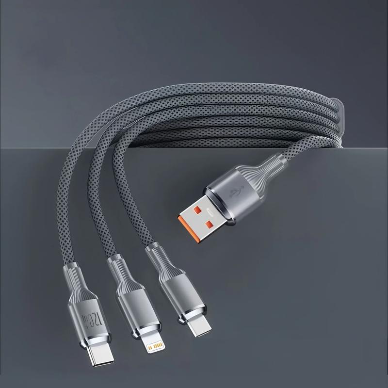 Універсальний кабель 3-в-1 призначений для швидкого заряджання та передавання даних для різних пристроїв, включно з iPhone, Xiaomi та іншими з роз'ємами Micro USB і Type C. Кабель завдовжки 1.2 метра зручний у використанні вдома та в дорозі, забезпечує стабільну і безпечне заряджання. Особливості: - підтримка швидкого заряджання - сумісний з iPhone, Xiaomi, Micro USB і Type C - універсальне рішення для різних пристроїв Характеристики: - довжина кабелю: 1.2 м - тип роз'ємів: Lightning, Micro USB, Type C