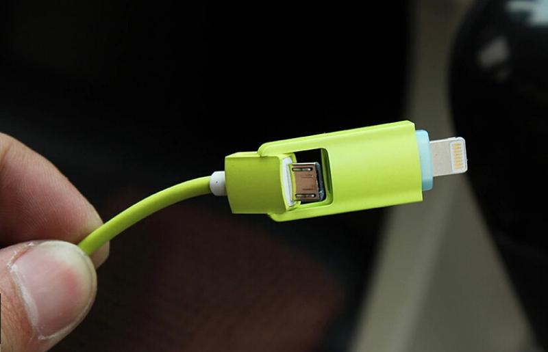 Двух интерфейсный кабель, имеет два типа подключения micro usb, и lightening.