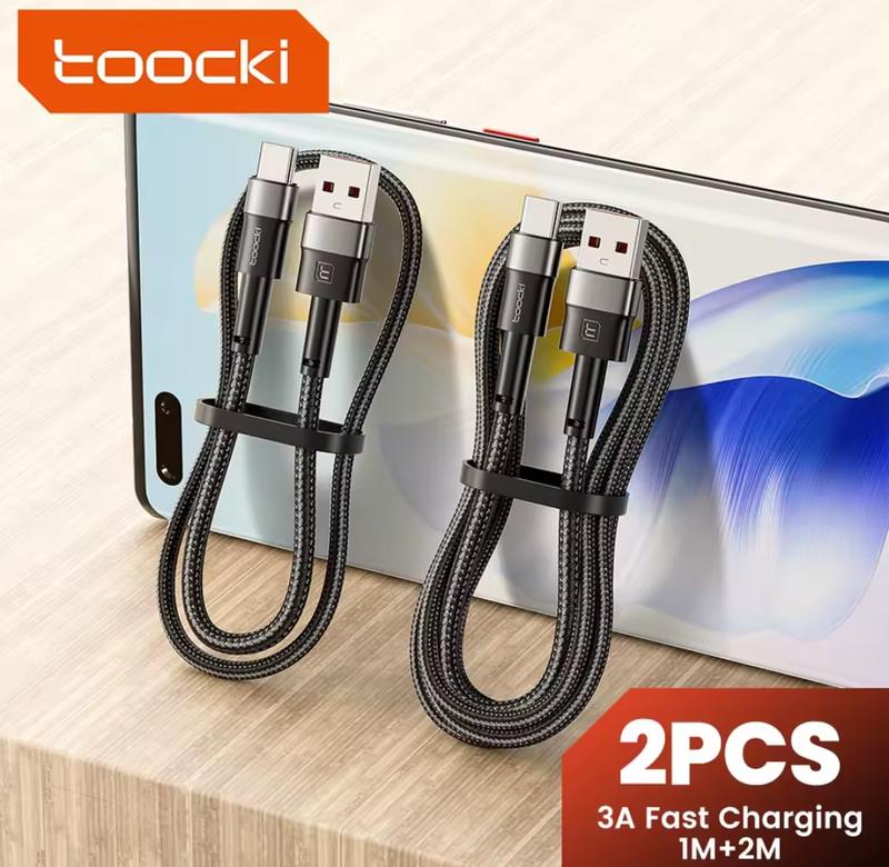 Зарядний кабель Toocki (2 шт. у комплекті, 1 м. і 2 м.) USB-A/type-C 3 А 480 Mbps колір — чорний. Швидке та надійне передавання даних і заряджання пристроїв. Колір чорний.