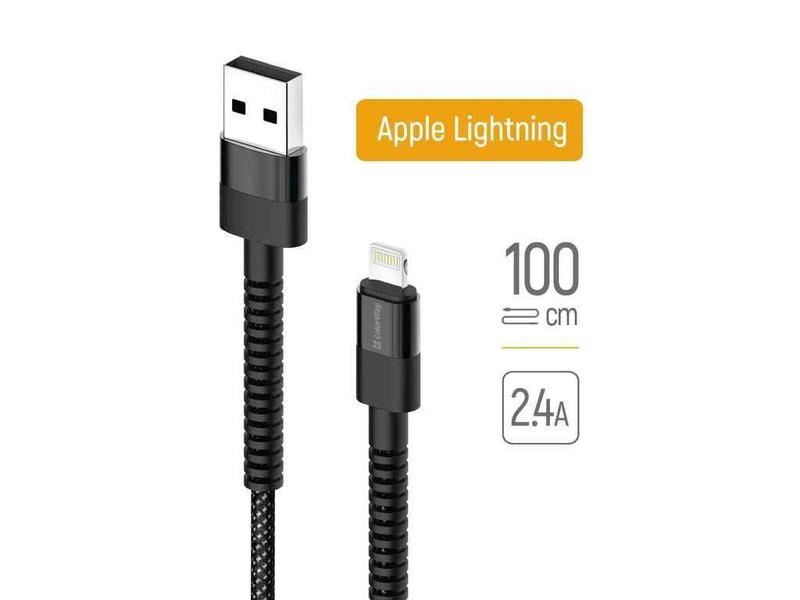 Кабель usb - lightning apple (nylon - long head) 2.4а 1м черный тм сolorway