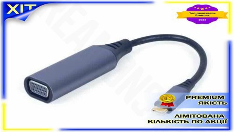 Dm перехідник type-c vga специфікація 2.2 cablexpert чорний 15 см для підключення до моніт...